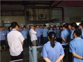 作為精益大會(huì)戰(zhàn)5S戰(zhàn)役動(dòng)力隊(duì)政委兼稽查大隊(duì)長(zhǎng),同時(shí)也是品質(zhì)部高級(jí)主管的他,工作強(qiáng)度自然不必多說(shuō)。全廠17個(gè)工序,針對(duì)各個(gè)工序各個(gè)項(xiàng)目的重點(diǎn)及實(shí)施方案進(jìn)行巡回演講,虧得咱們“鳥叔”口才一流、能說(shuō)會(huì)道而又不乏幽默感!瞧,宣導(dǎo)會(huì)現(xiàn)場(chǎng)童鞋們聚精會(huì)神的模樣!