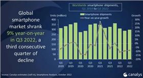 2022年三季度全球智能手機(jī)出貨量下降9%