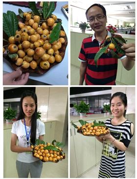 不過(guò),果實(shí)都熟了,哪有不吃的道理呢,誰(shuí)能忍受這個(gè)誘惑嘛!作為人政部的一員,當(dāng)然要體恤吃貨同事們的心思,乘著好天氣,把黃金枇杷全給收了。純天然沒(méi)打過(guò)農(nóng)藥的果子,吃起來(lái)的感覺(jué),那是根本停不下來(lái)??!吃的同時(shí)當(dāng)然忘不了現(xiàn)場(chǎng)分享的啦,見(jiàn)者有份,哈哈。