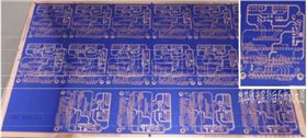 然后,電路板廠家會根據(jù)客戶的制圖文件,在一整塊板子上繪出電路圖。這里需要提一下,那就是這塊板子是一種特殊材質(zhì)制作的,表面敷了一層很薄很薄的銅皮。因?yàn)槲覀兊木€路都是銅皮做的,所以我們把制作圖通過一種特殊的方式映到整塊板子上,讓沒有繪圖線路的部分曝光出來(就是有線路的地方都被覆蓋了)。