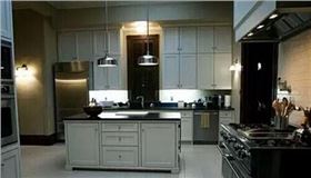 當(dāng)飾演弗蘭克和克萊爾·安德伍德夫婦的凱文·史派西和羅賓·懷特在拍攝時(shí)看到他們?cè)趧≈械募視r(shí),提出的一個(gè)共同的想法是“應(yīng)當(dāng)有一處設(shè)計(jì)和現(xiàn)代感發(fā)生觸碰”。紙牌屋制作設(shè)計(jì)師SteveArnold讓現(xiàn)代口味首先在廚房里發(fā)生:法國(guó)經(jīng)典的Tolix金屬椅,工業(yè)風(fēng)濃厚的金屬吊燈和時(shí)尚電器,再結(jié)合骨白色的地磚,整個(gè)廚房堪稱完美。此外設(shè)計(jì)團(tuán)隊(duì)在采納這個(gè)意見(jiàn)的同時(shí),也因?yàn)榭巳R爾對(duì)攝影的興趣在家里擺放了很多當(dāng)代藝術(shù)作品。