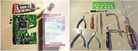變廢為寶利用廢PCB板做手工DIY小耳釘?shù)淖龇ɡ锩胬玫较旅孢@些材料以及工具:從報廢電腦回收拆下的線路板、萬能膠、切割模板、各種規(guī)格的鉗子、電烙鐵、螺絲刀、鋸子、夾子、記號筆、透明指甲油、耳釘、砂紙、銼刀、牙簽等。