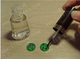 5、在經(jīng)過打磨的PCB板圓片的其中一面,涂上一層透明的指甲油,讓它顯得鮮亮圓潤。