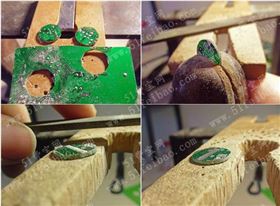 6、PCB板沒有涂過指甲油的一面,用牙簽涂一些萬能膠后,把耳釘粘在上面,一對特別的DIY線路板耳釘就做好了。