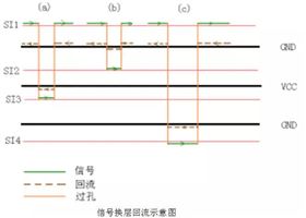 a、c兩種情況如果不能在信號換層過孔處將信號回路連通起來,將引起信號回路面積增大,從而導致EMC問題。