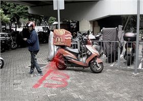 最重要的是投影的圖案可定制,這就為這款產(chǎn)品提供了無限的可能,像下圖中那個麥當勞的大LOGO就是個例子。這就無形中為商家們打開了一個全新的宣傳渠道,尤其是對那些自帶物流的商家來說。這種宣傳方式將大大減少紙張的浪費,并且對于商家來說綜合成本也更為低廉。