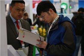 大胡子梁總在給客戶介紹產品,探討PCB工藝。