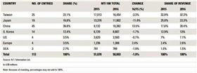 備注:中國企業(yè)上榜企業(yè)數(shù)量為45家,占39.8%,上榜企業(yè)營收增長13.5%,遠遠高于全球百強企業(yè)平均衰退2.1%的水平。