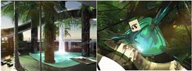 在底層的叢林甲板上,大自然的氣息撲面而來,栽滿了棕櫚樹的垂直花園里,居然還設(shè)計了一處獨立瀑布。不能少的當(dāng)然還有可以做SPA的泳池、按摩室和美容沙龍。
