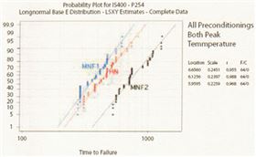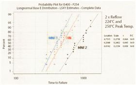 圖1、此為三種板材所做之通孔電路板,先經(jīng)各兩次有鉛與無鉛回焊之預(yù)先考驗,再進(jìn)行通孔可靠度之TCT試驗,所得三種電路板失效之循環(huán)次數(shù)與失效比率之對照情形。