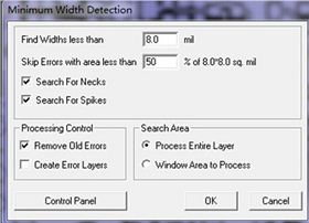 2、查看線路板最小線寬:點(diǎn)擊菜單Analysis->minimum widths,會(huì)彈出如下對(duì)話框